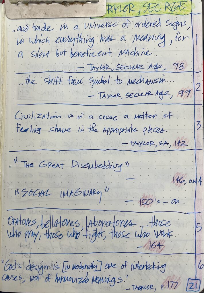 A.21.quotes from Charles Taylor, A Secular Age