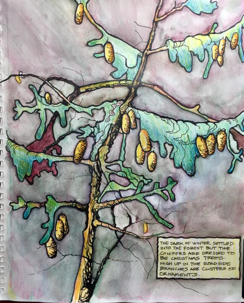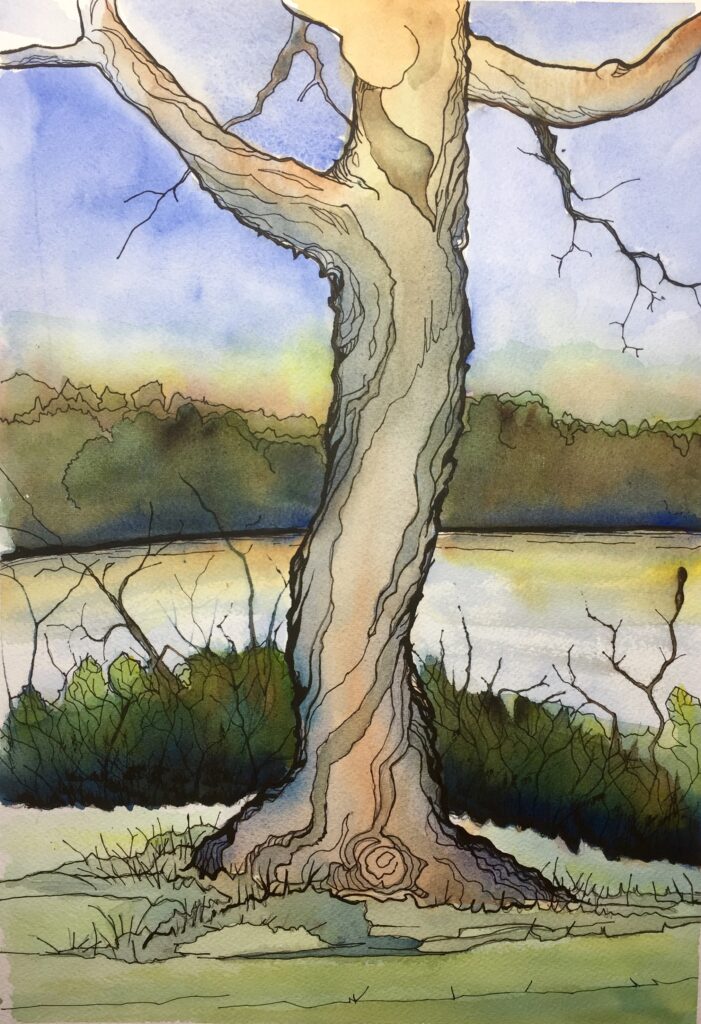 From a Saturday drive. Pen, watercolor. 140 lb. cold press WC paper, 9 X 12, Grumbacher.