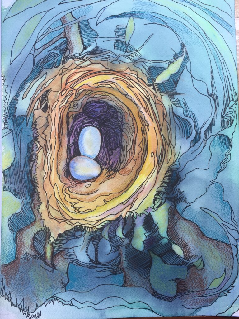 Prismacolor pencils, Platinum Carbon ink via Lamy Safari pen. 11 x 14 CP paper.