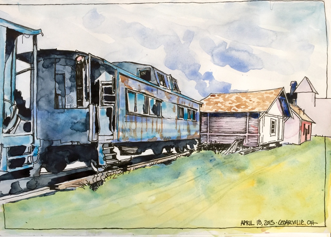 Sketchbook: And A Caboose The Color of SkyBy Tim / May 10, 2015 Watercolor and pen in a Stillman and Birn alpha sketchbook.