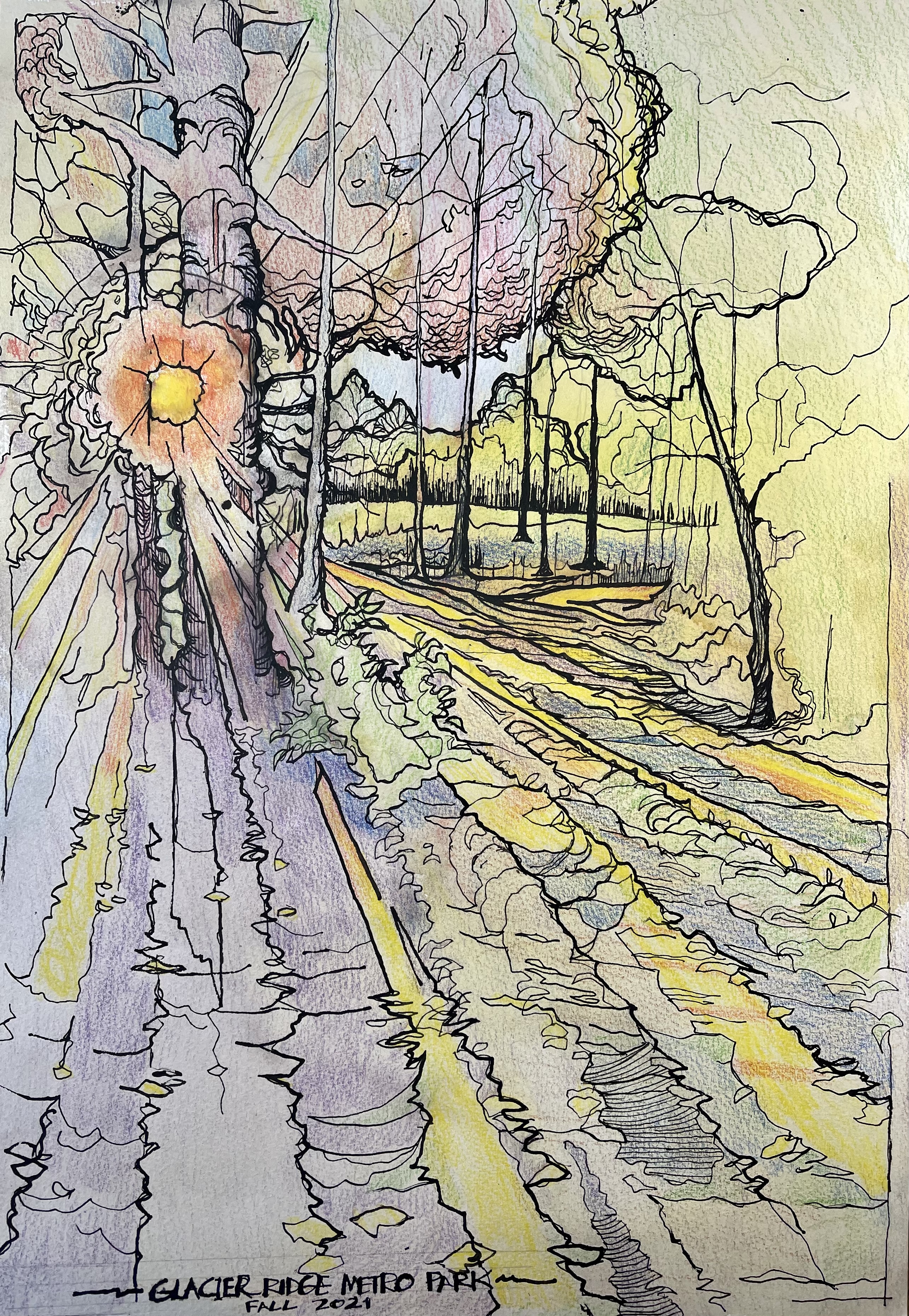 Blick cold press watercolor block, 140 lb., 14 X 20, Faber-Castell Durer WC pencils, Noodler’s Black ink, dip pen