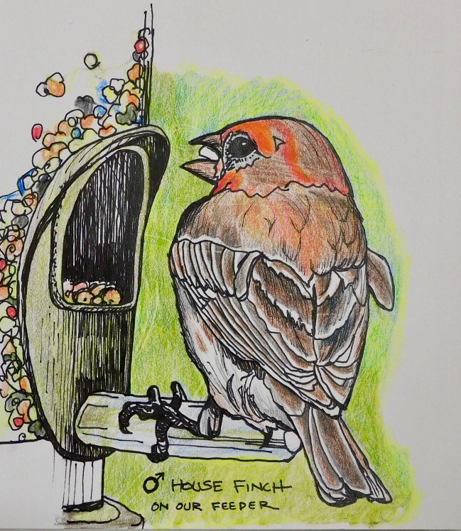 House FinchBy Tim / June 28, 2020 Lamy Safari fountain pen (M) Prismacolor pencils From a photo on my Nikon 600B