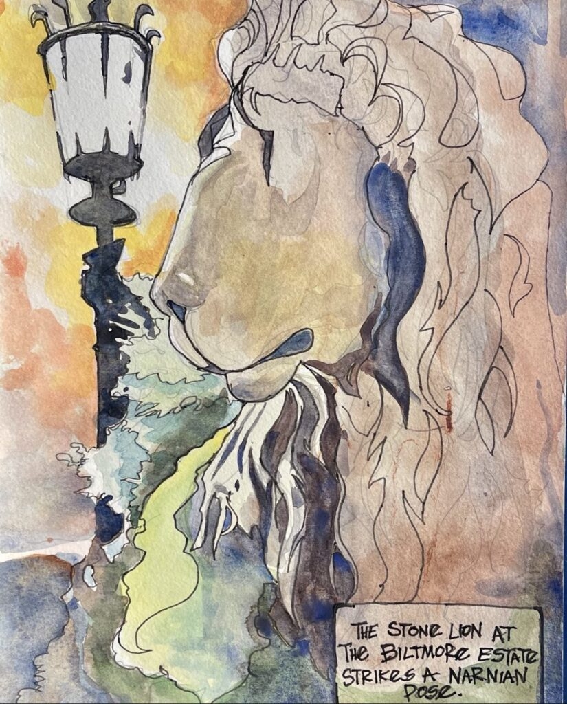 Sketchbook: Stone Lion At The Biltmore Strikes A Narnian Pose