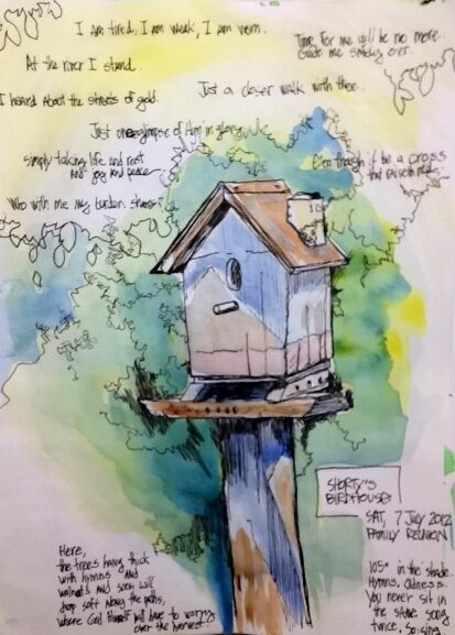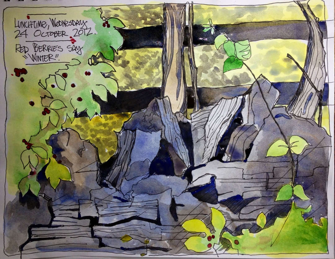 Where I draw and paint and write poems and essays. And collect texts from my reading, like a crow collects tinfoil.
